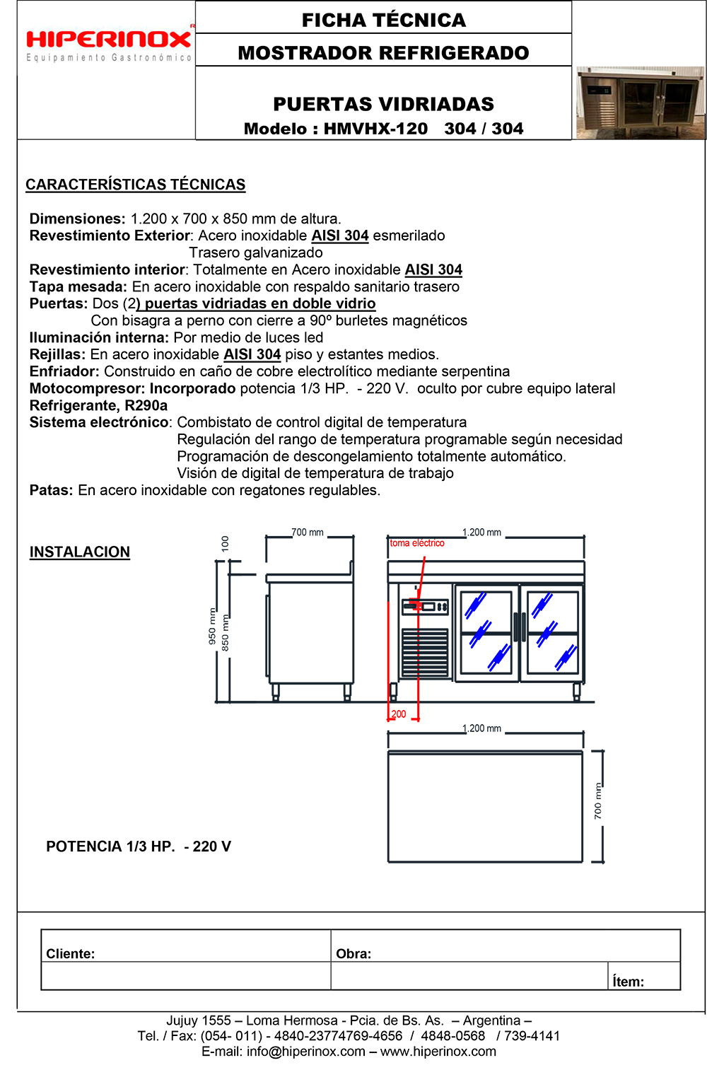 Mostrador refrigerado puertas vidriadas HMVHX-12