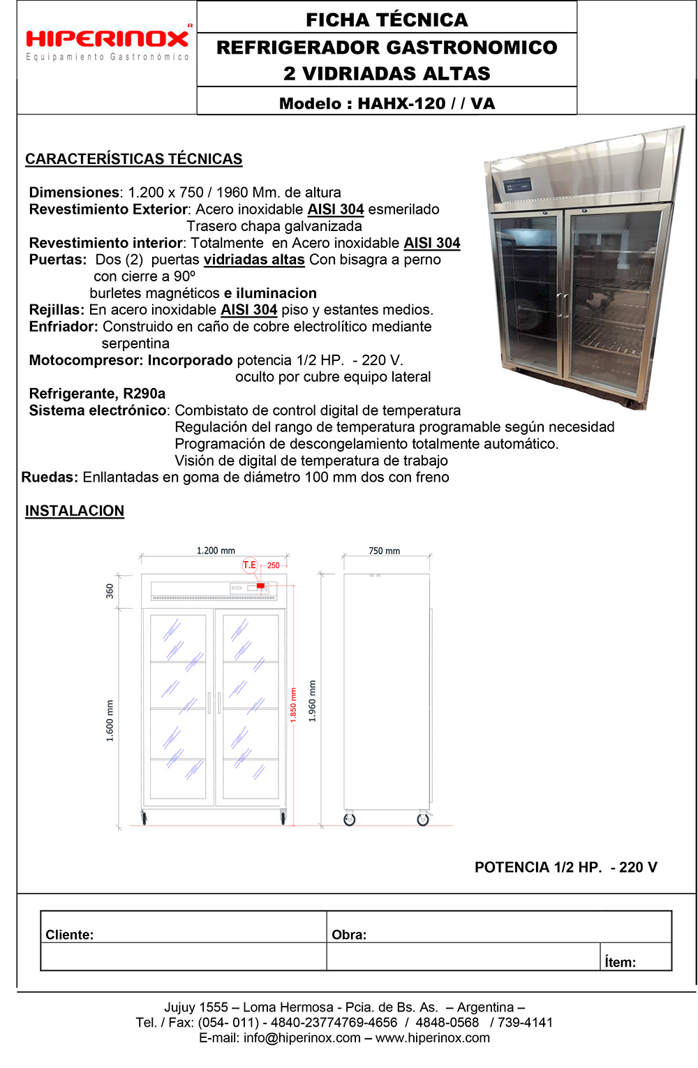 Refrigerador gastronómico exhibidor HAHX-120 / / VA